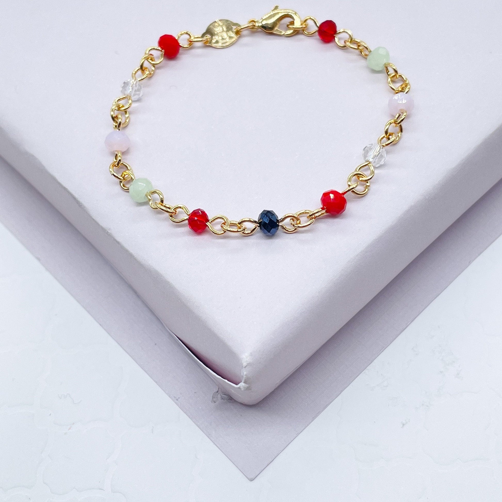 18k Gold Layered Beaded Kids Bracelet With a Variety Of Multi Color Acrylic