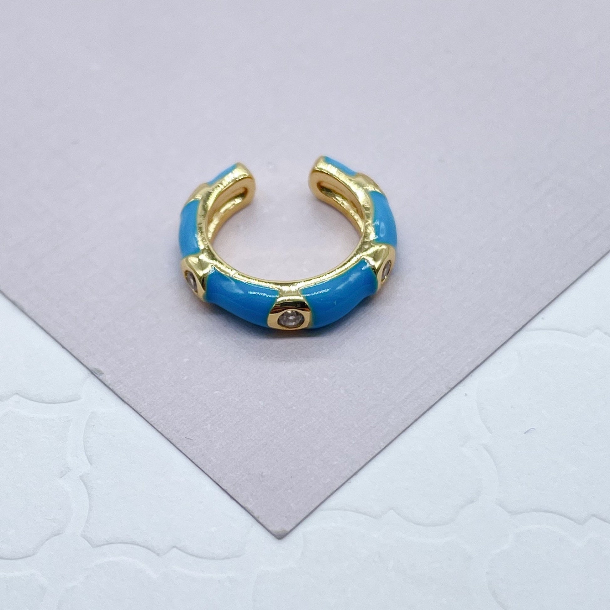 18k Gold Filled Colorful Enamel Ear Cuff Earrings Cubic Zirconia Details Colored Jewelry