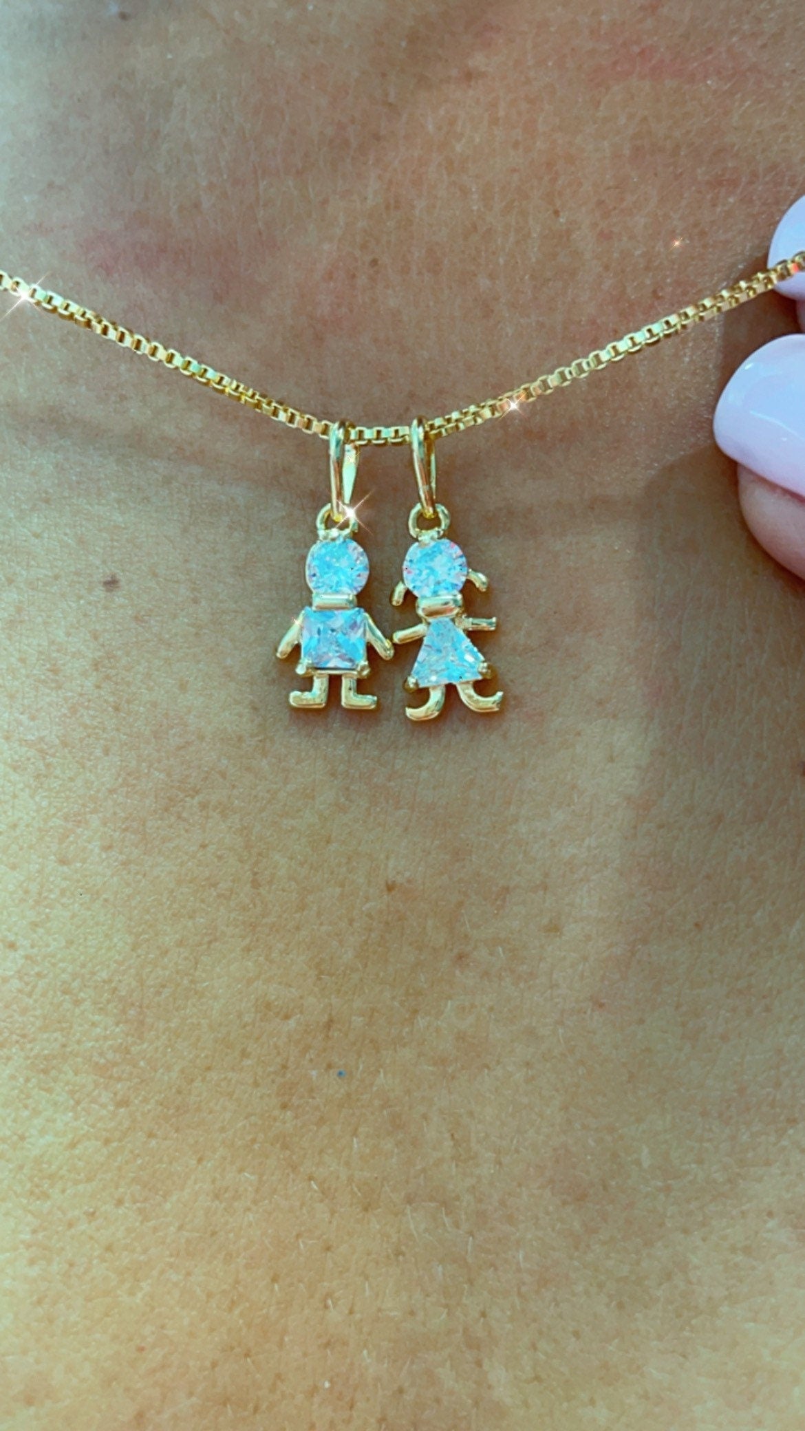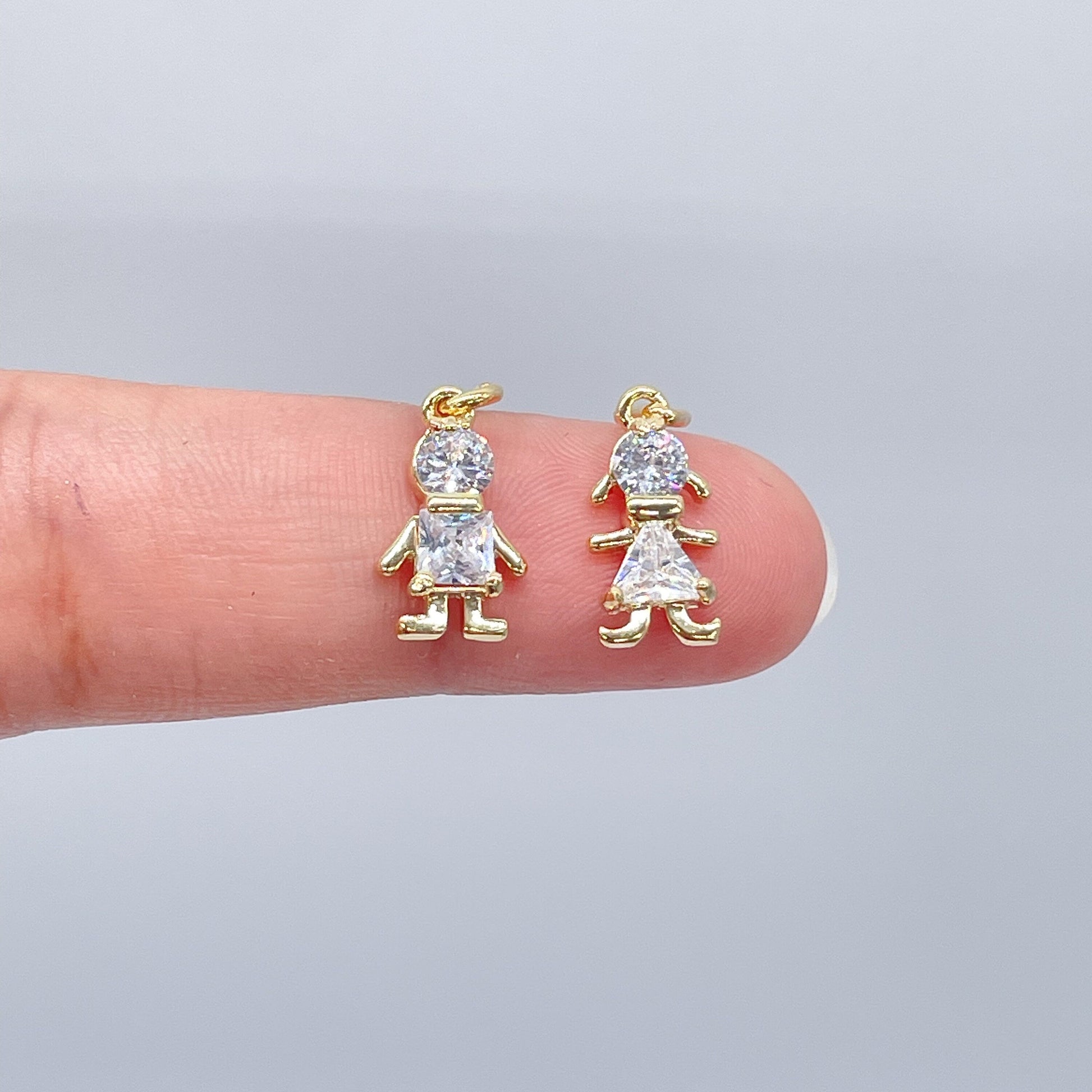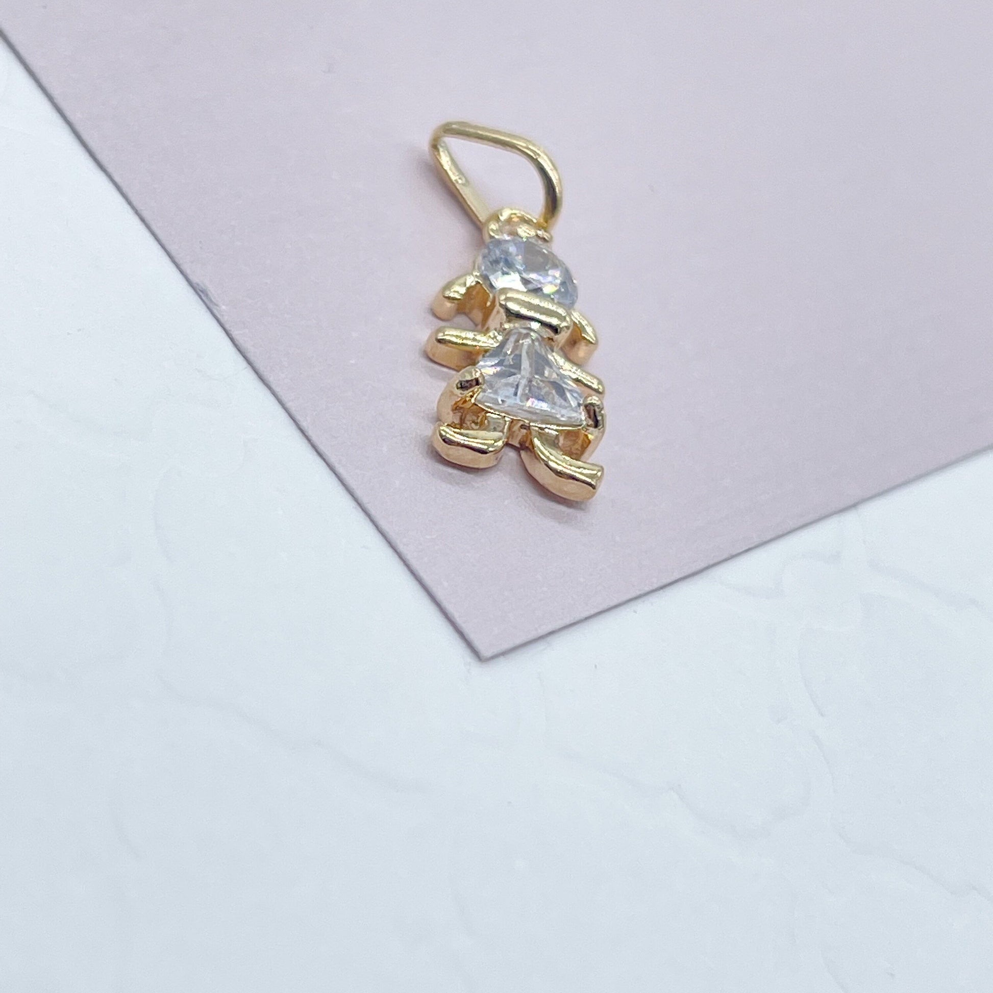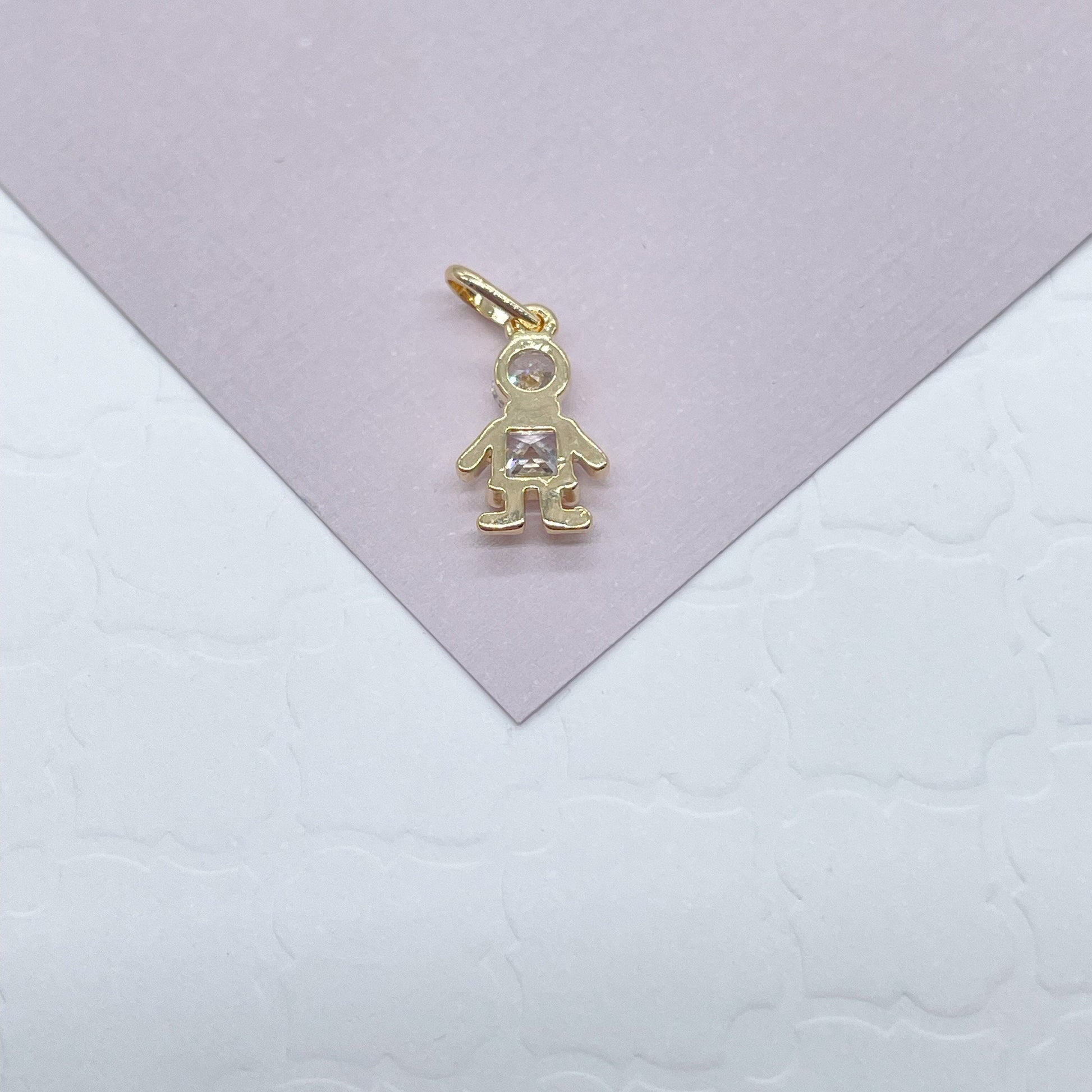 18k Gold Layered Kids Charm Boy or Girl Featuring Big Cubic Zirconia For