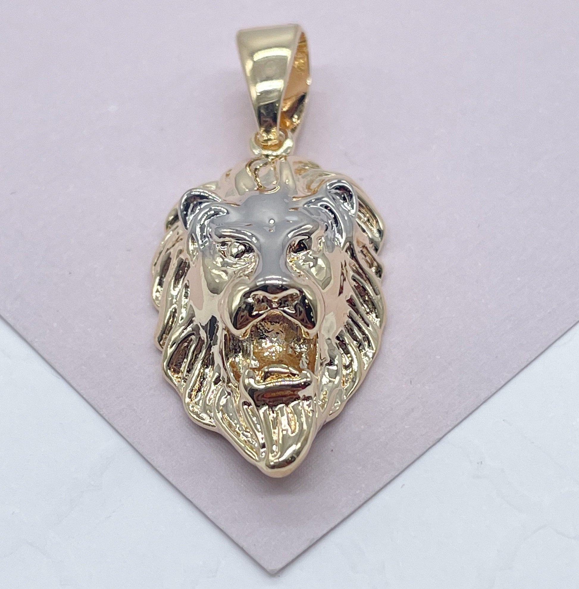 18k Gold Layered Lion Head Pendant With Silver Head And Gold Mane Tow Tone