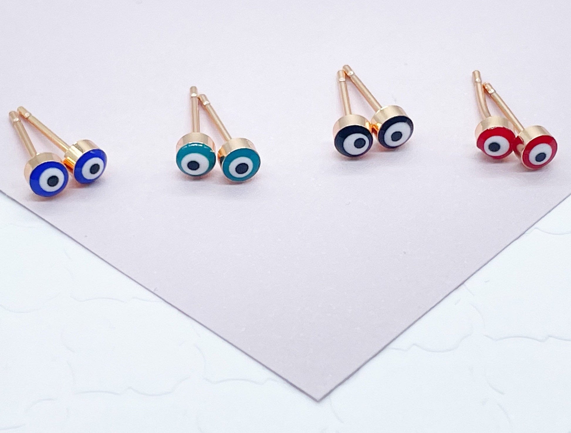 18k Gold Filled Little Dot Evil Eye Stud Earrings