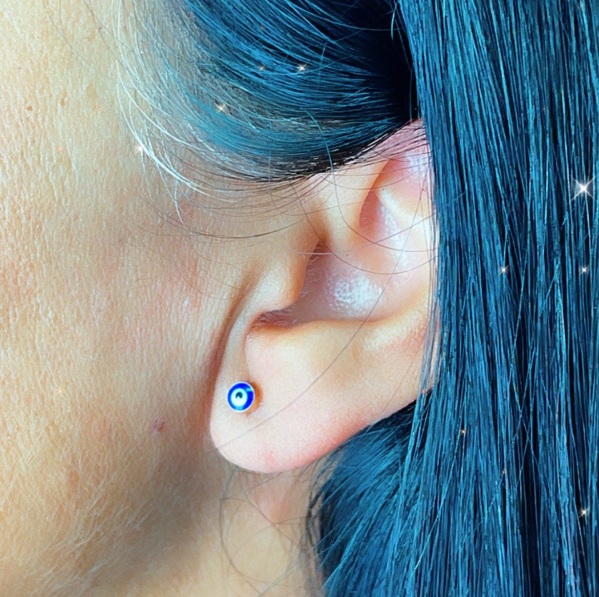 18k Gold Filled Little Dot Evil Eye Stud Earrings.