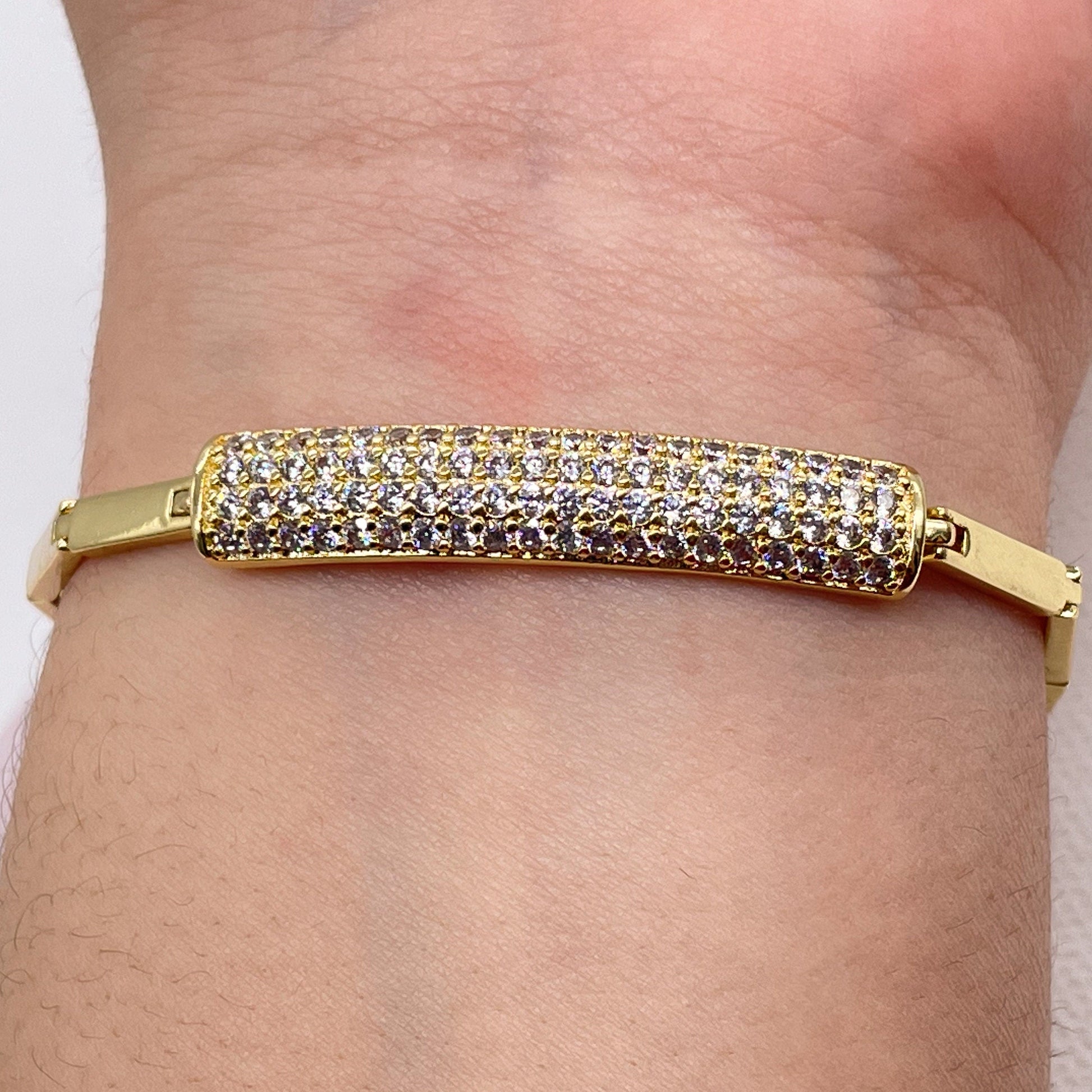 18K Gold filled Bar Bracelet with Pave Micro Zirconia