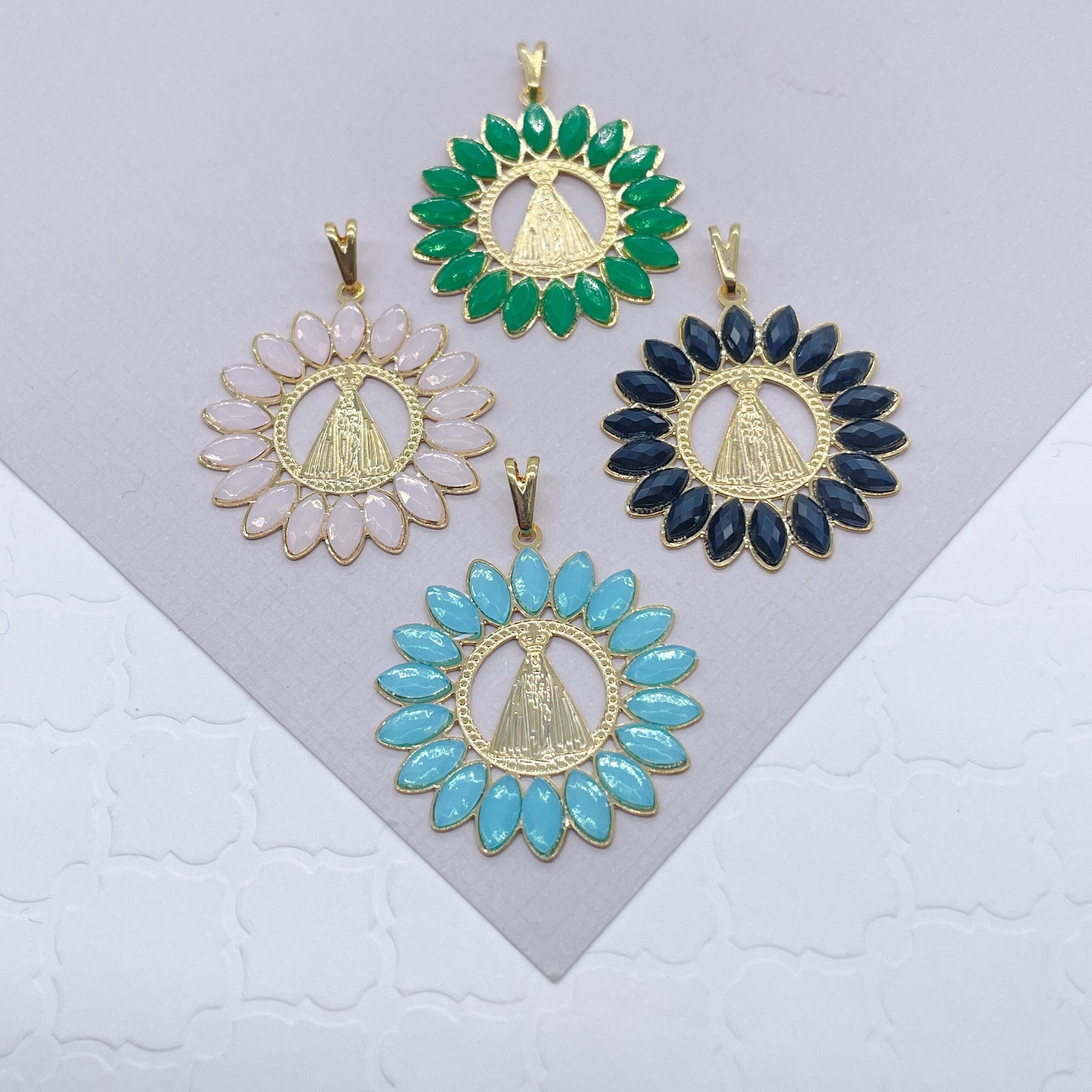 18k Gold Filled Our Lady of Charity Virgin de la Caridad Pendant Charm in Multi colors