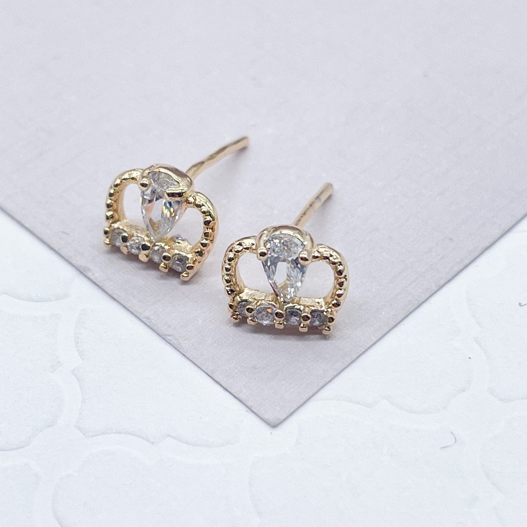 18k Gold Layered Small Crown Cubic Zirconia Stud Earrings Dainty Jewelry