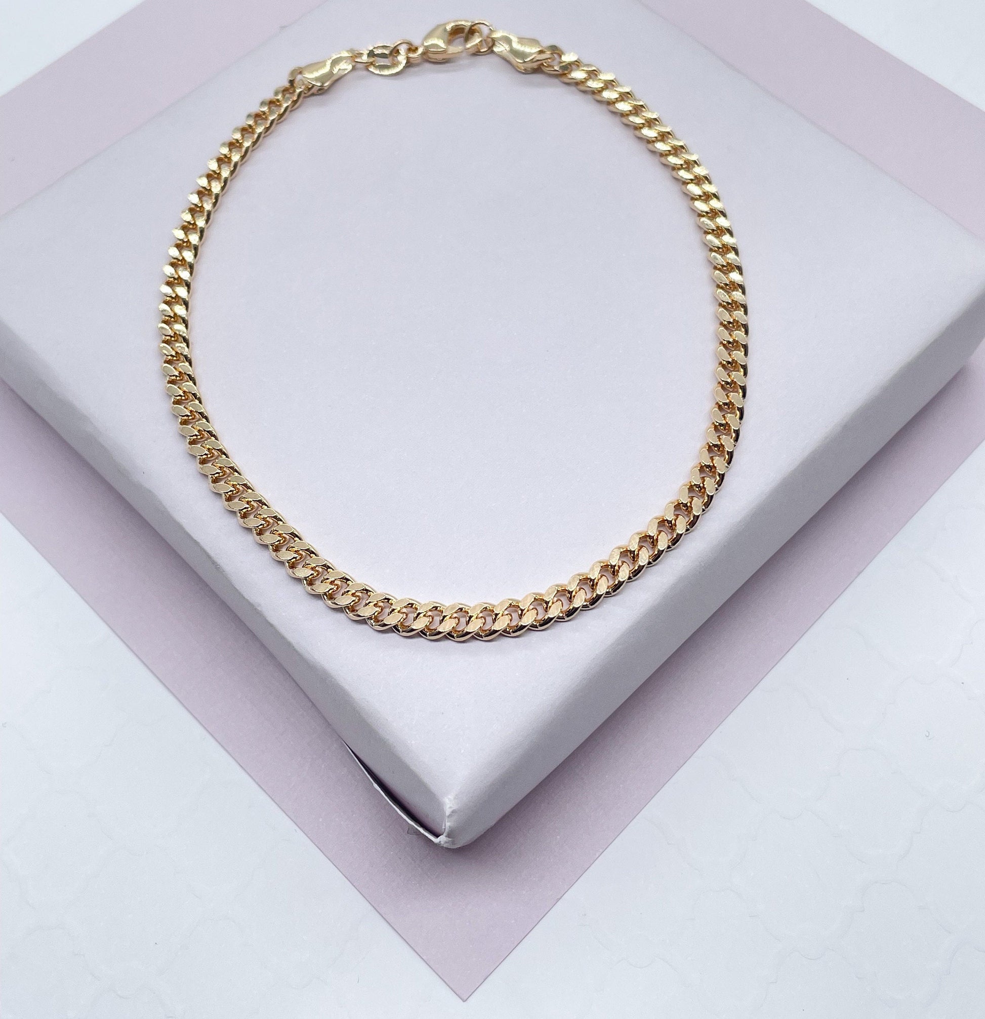 4mm 18k Gold Layered Plain Miami Cuban Link Anklet, Curb Link, Wholesale