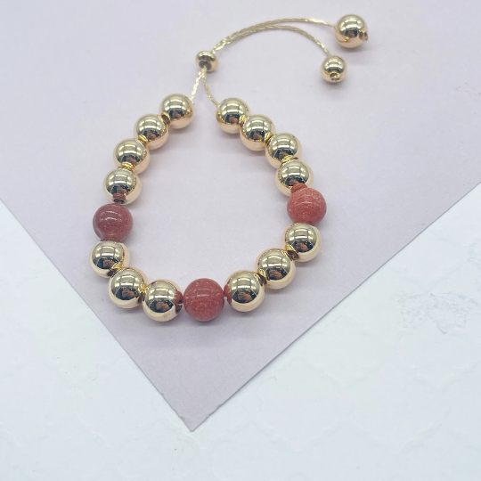 18k Gold Layered Venturina and Gold Beads Adjustable Bracelet