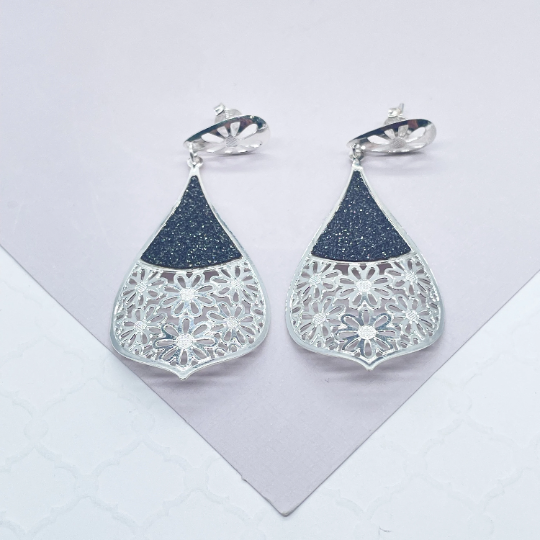 Tear Drop Dangling Earrings with Sparkling Black Detail- Made in Brazil