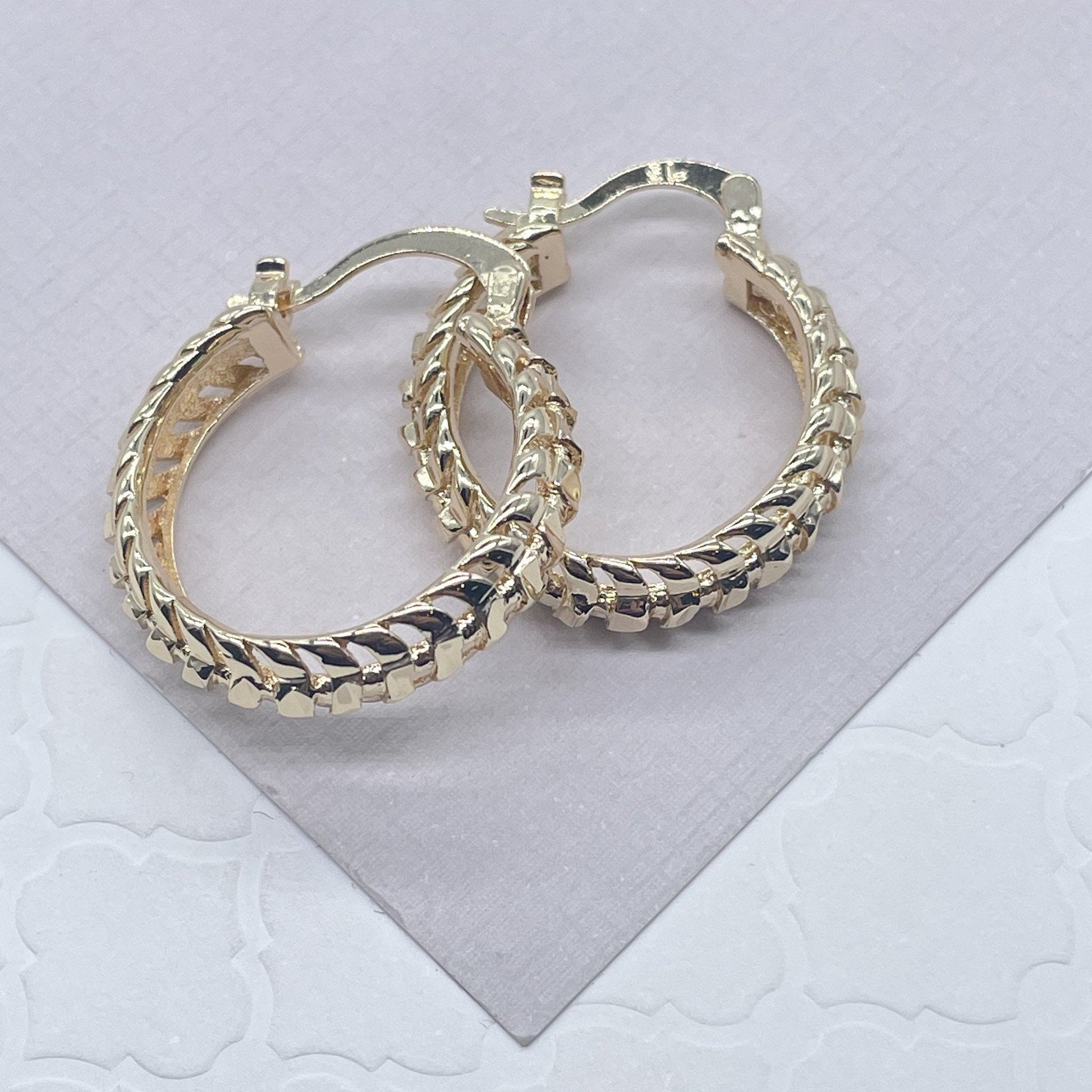 Vintage Alligator Tail Pattern Hoop Earrings Made In 18k Gold Filled Wholesale